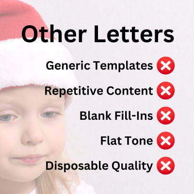We’re confident your child will love their Santa letter! But if you’re not completely satisfied, we offer a full refund—no questions asked.